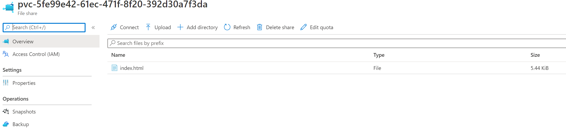Použití dynamického PVC má pro mnoho případů určitě smysl, ale na rozdíl od třeba disků očekávám, že daleko častěji budu chtít konkrétní už existující share. Tak například chci mít třeba obrázky nějakého webu uloženy v této storage jednuduše ji připojit k webu (preferoval bych servírovat obsah rovnou z blob storage a dát před to Azure CDN, ale to může vyžadovat zásah do aplikace).