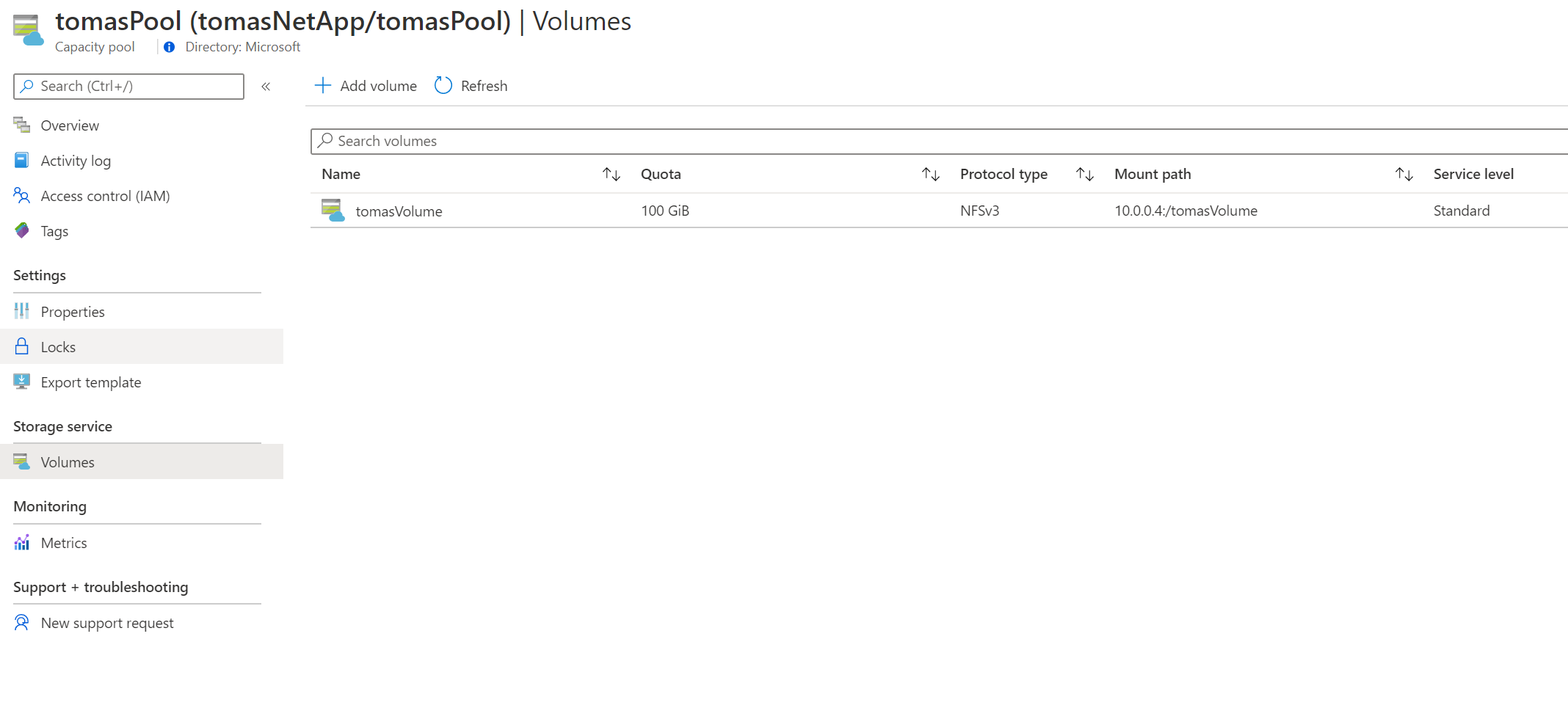 Azure NetApp Files si vytvoříme tak, že zřídíme account, následně storage pool (minimální velikost k je 4TB) a v něm následně Volume, který bude namapovaný do dedikovaného subnetu ve VNETu, kde mám AKS (každý Volume stejného poolu můžete dát jinam).