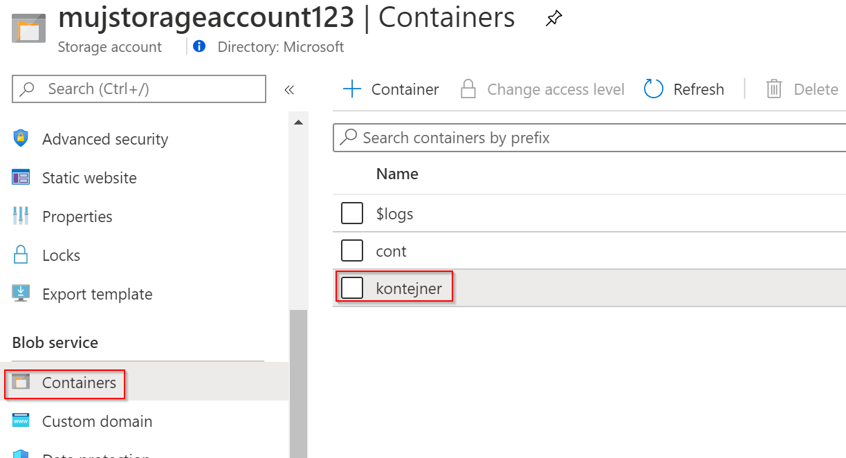 Vyzkoušejme si to. V portálu jsem vytvořil kontejner.