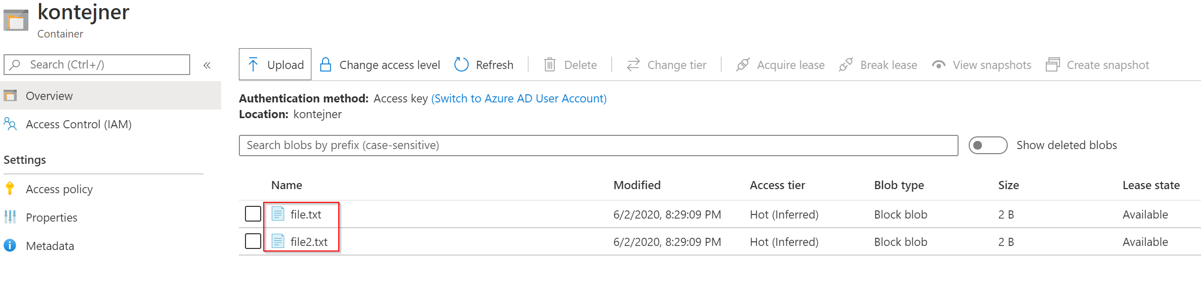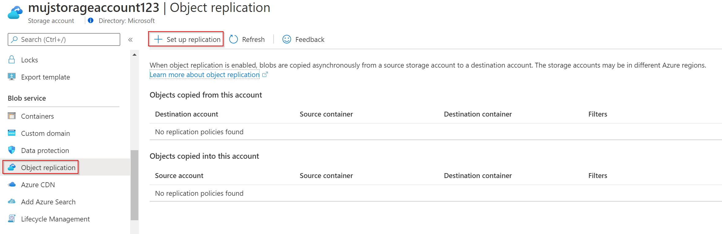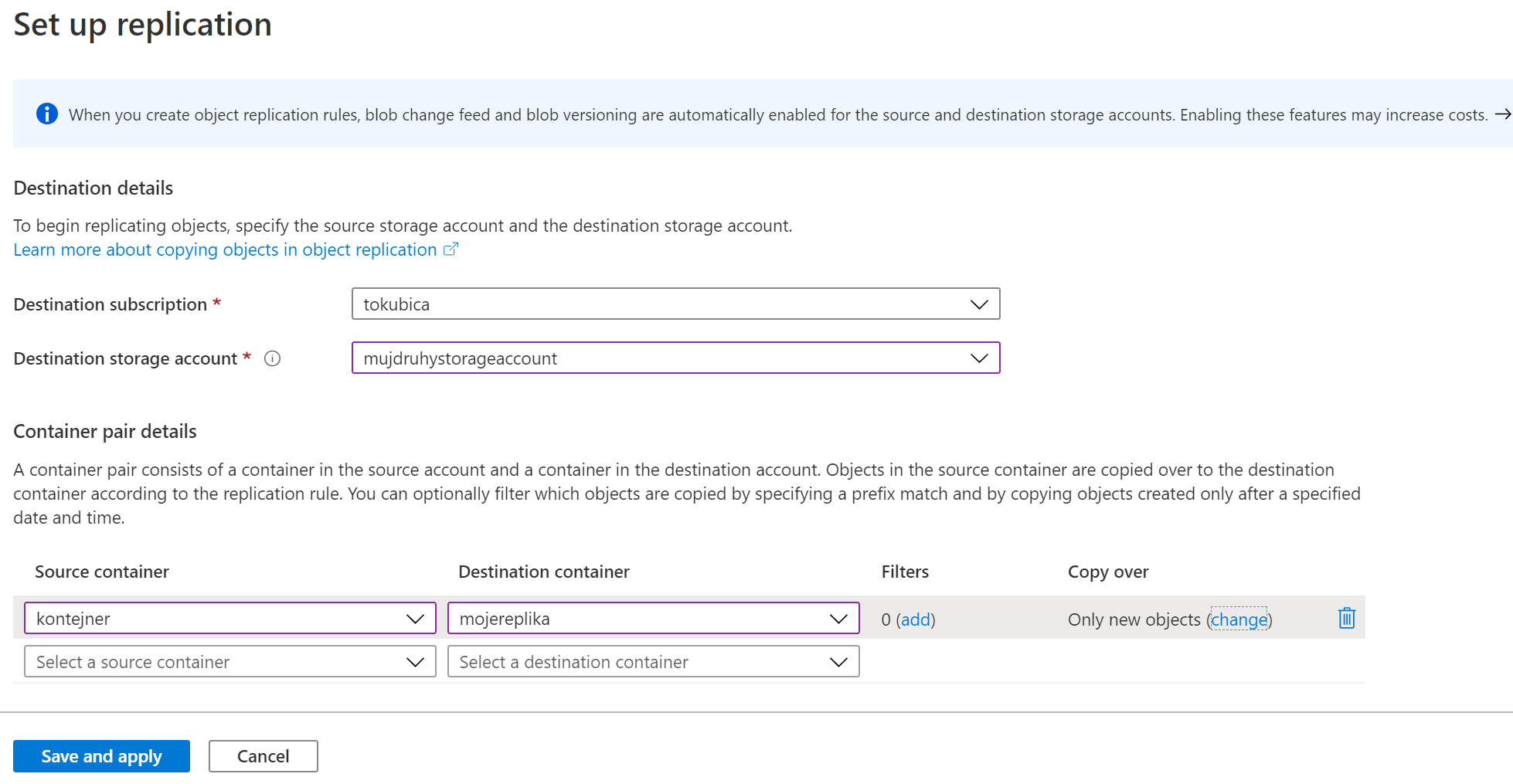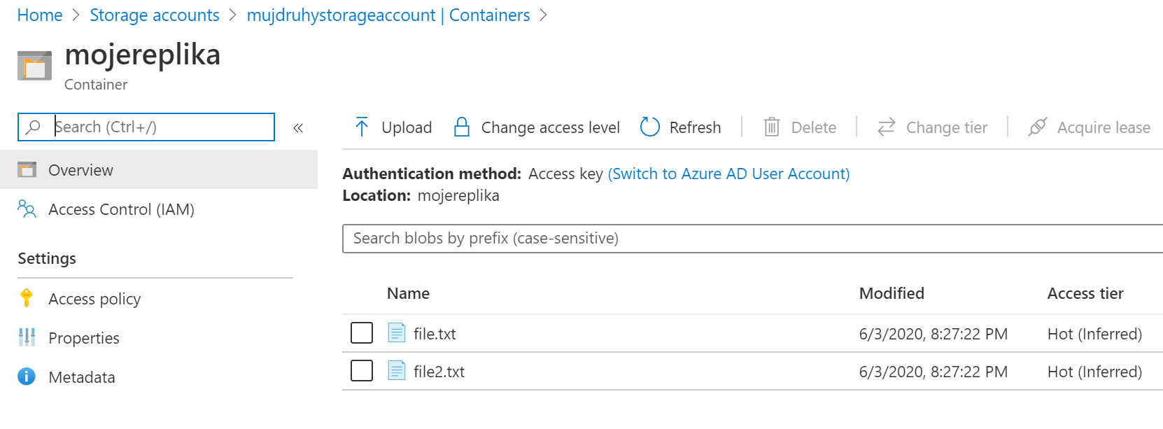 Uložil jsem politiku a hnedle v druhém storage accountu nacházím repliku objektů.