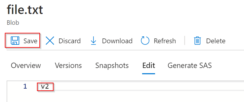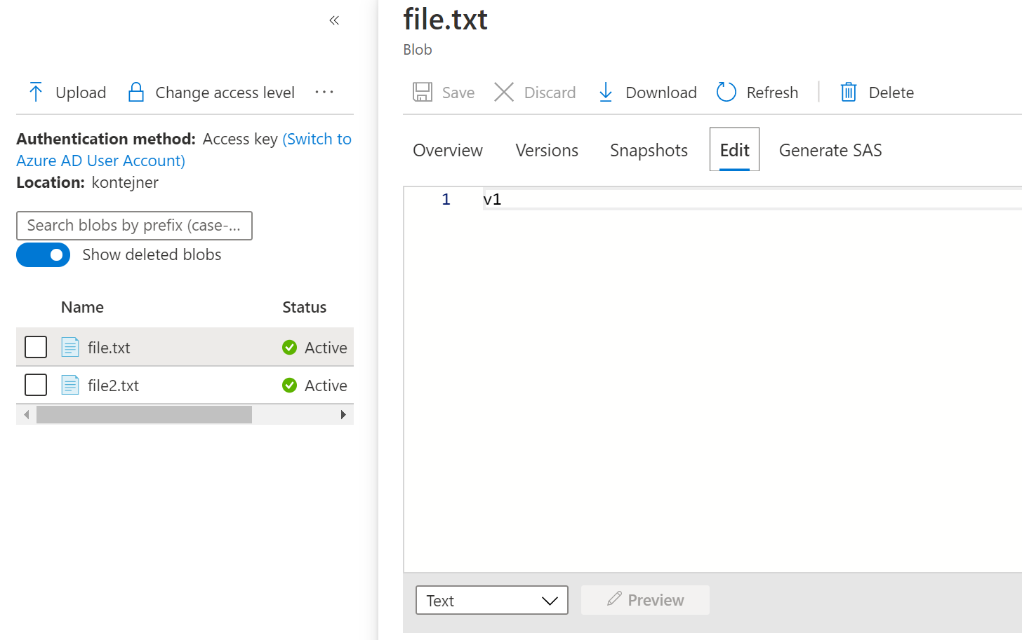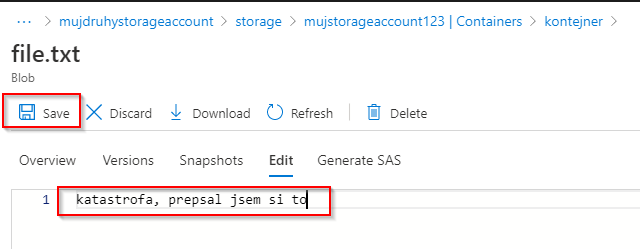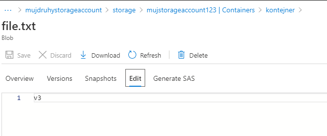 Pojďme na to. Mám tady soubor file.txt, jehož obsahem je řetězec v1. Přímo v editoru v portálu ho přepíšu na v2 (nebo u sebe na notebooku a soubor uploadnu přes ten původní). Zopakuji ještě s řetězcem v3.