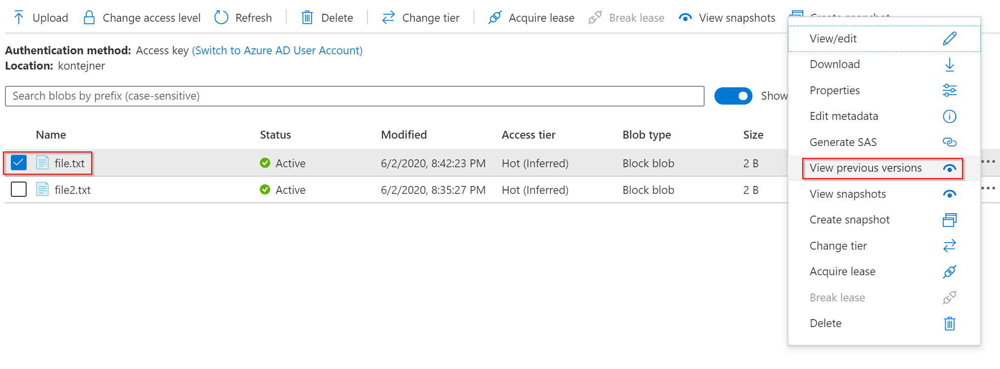 Pojďme na druhou funkci - verzování objektů. Pokud stávající objekt přepíšeme novým obsahem, umožní verzování vracet se k předchozím obsahům. Z finančního hlediska je to taky docela zajímavé, protože pokud se jedná o větší soubor, který je složený z několika bloků, tak pokud nová verze má nějaké bloky stejné, není třeba je ve storage vytvářet znovu. Verzování je tedy deduplikované na úrovni bloků (ty mají velikost mezi 64KB a 100MB a dají se v rámci API nebo v portálu při uploadu určit - malé bloky zvyšují poplatky za transakce, ale zvyšují šanci deduplikace, pokud hodně využíváte verzování). Abych předešel nedorozumění - tohle platí jen pro konkrétní objekt. Pokud vytvoříte identický objekt, jen s jiným názvem, uloží se celý tak jak je a platíte ho dvakrát.