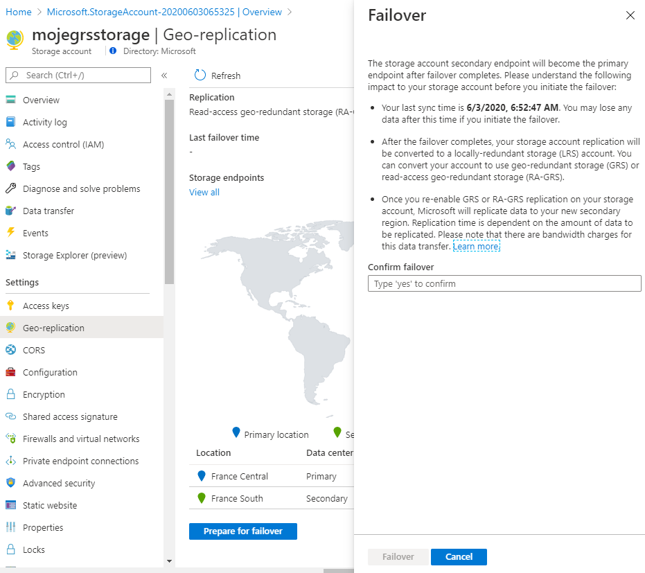 Další zajímavou funkci v preview je replikace objektů mezi dvěma accounty. K čemu je to dobré? Tradičně máte samozřejmě už mnoho let k dispozici storage account v režimu globální replikace (GRS) včetně varianty RAGRS, kdy z druhého accountu můžete číst (a v případě havárie výchozího regionu pro vás Microsoft endpointy přepne, takže se zapisovacím stane záložní region). Možná jste nezaznamenali, že padlo předchozí omezení, kdy toto přepnutí zapisovacího regionu nemůžete udělat sami, musí to být Microsoft. Ten se k tomu totiž obvykle moc mít nebude, protože replikace je asynchronní, tedy má nenulové (byť dost nízké) RPO a přepnutí může znamenat ztrátu dat. Microsoft bude raději pár hodin opravovat a rekonstruovat data, než aby vám nějaká ztratil. Nicméně vy se na to můžete dívat úplně jinak a preferujete RTO (přepnout okamžitě) a poslední soubor klidně oželíte. Relativně nedávno přišla možnost si tohle řídit.