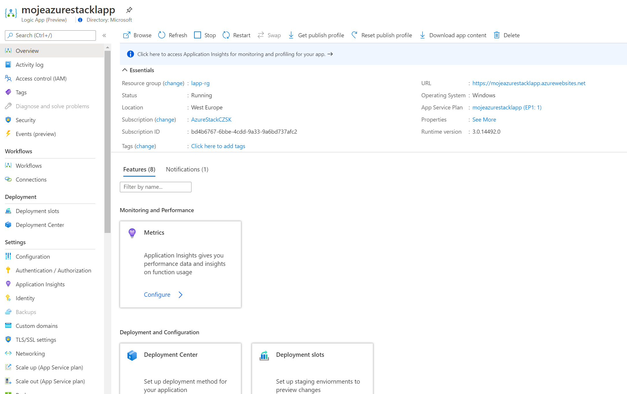 Vezměte v úvahu, že tímto Logic App dědí i další funkce aplikačních platforem v Azure - například deployment sloty pro A/B testing či canary releasování.