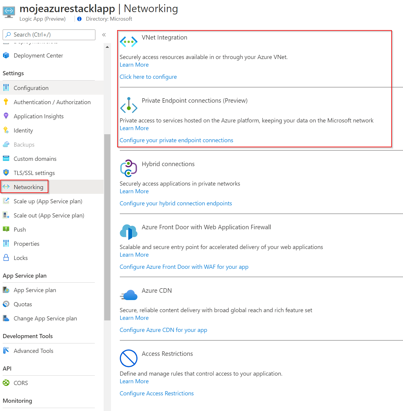 VNET integrace znamená, že workflow vidí do VNETu a potažmo VPN či Express Route, takže můžu přistupovat konektory do lokálního prostředí, třeba volat nějaký systém na privátní adrese. Private Endpoint mi pomůže v opačném směru pro případ, kdy je trigger typu HTTP (Logic App se spouští zavoláním API třeba z aplikace, Event Grid a tak podobně) a dovolí mi tento interface namapovat do privátní adresy VNETu.