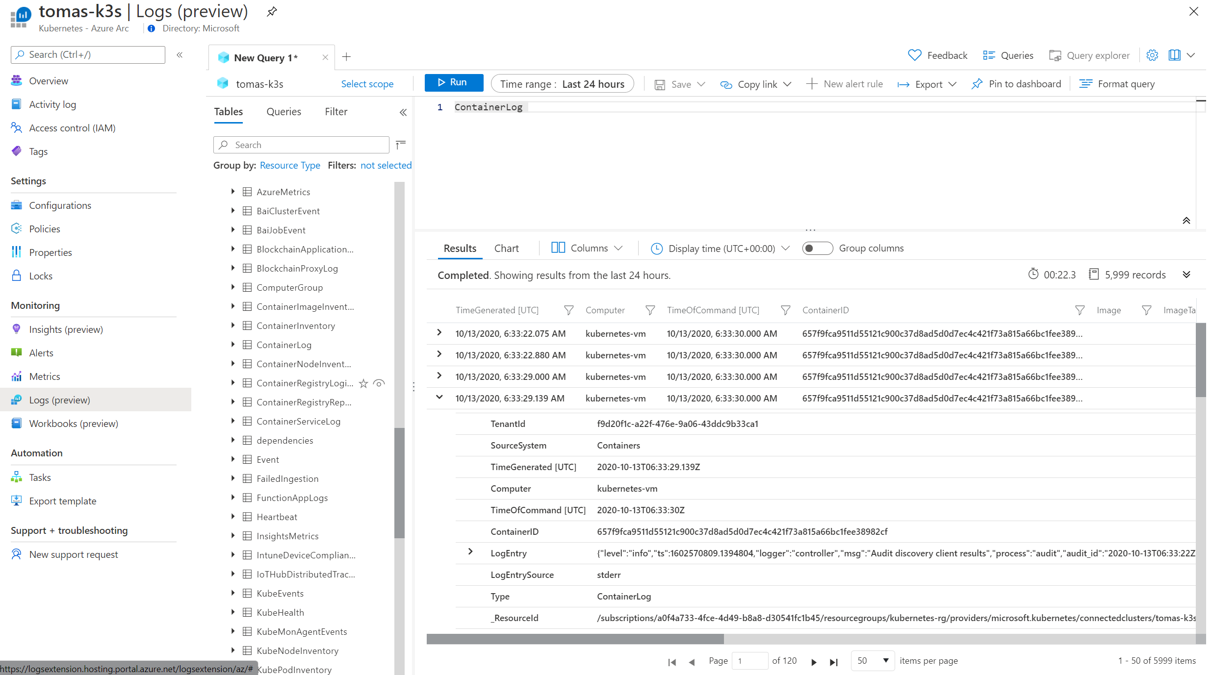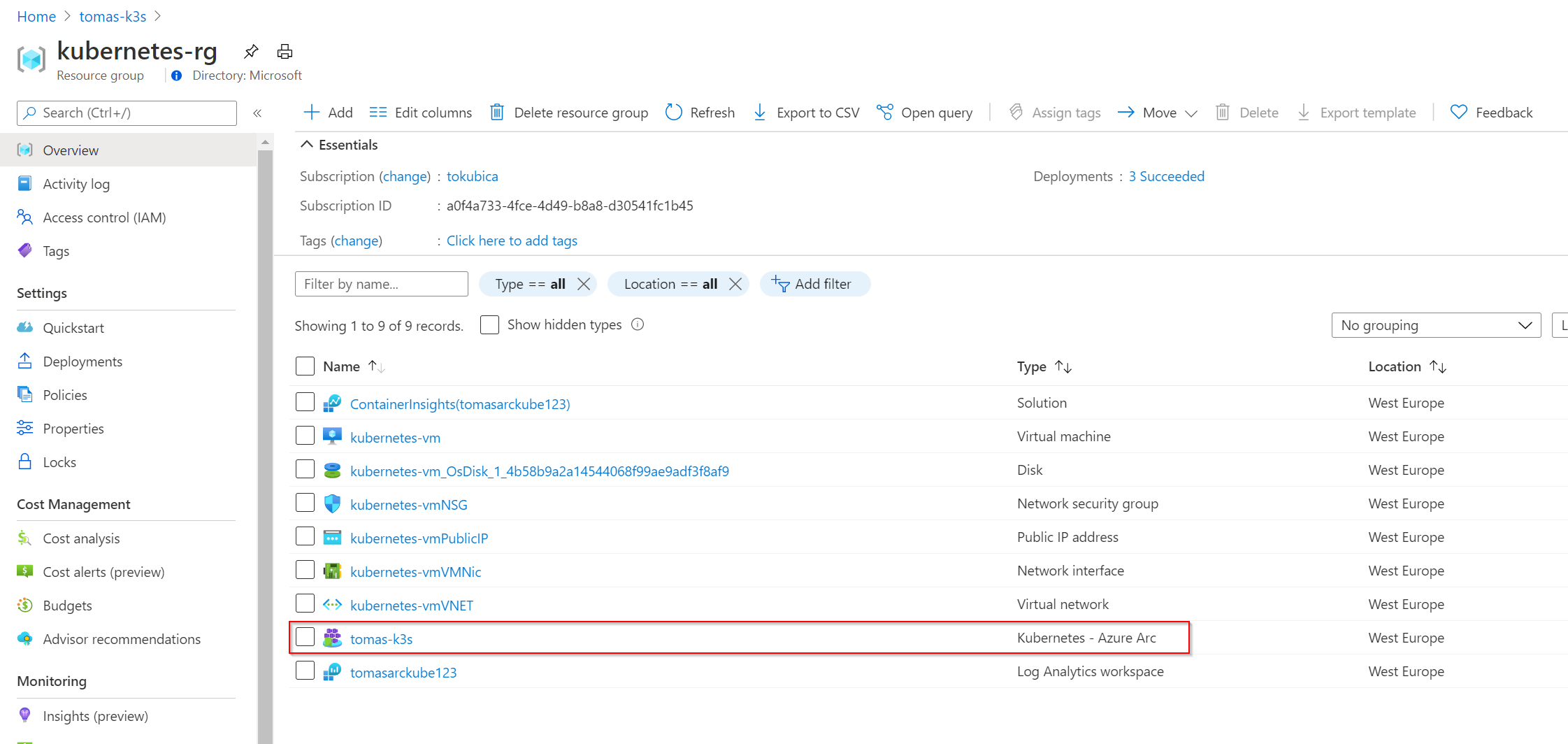 az connectedk8s connect --name tomas-k3s --resource-group kubernetes-rg --tags logAnalyticsWorkspaceResourceId=$WORKSPACE_RESOURCE_ID