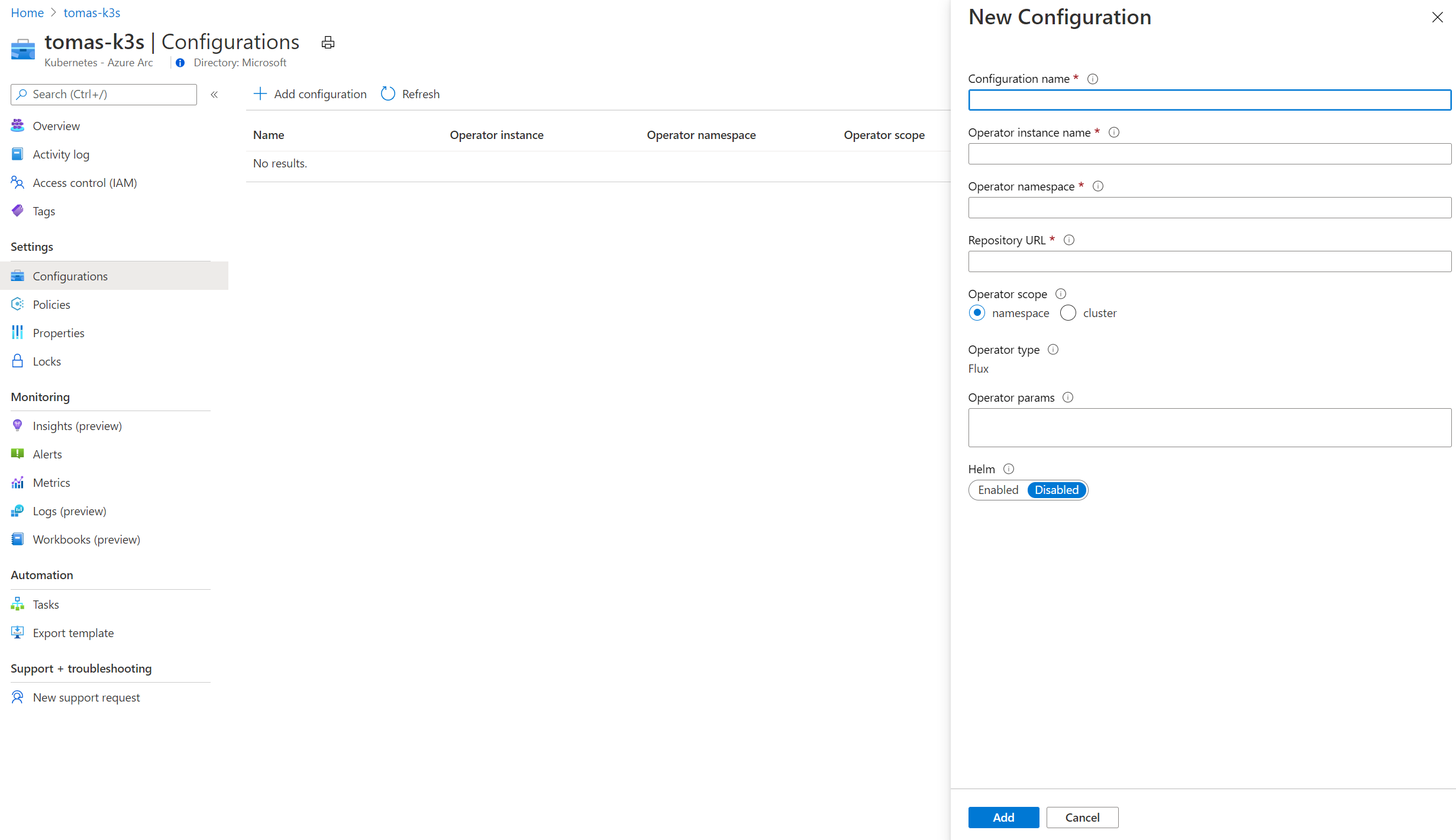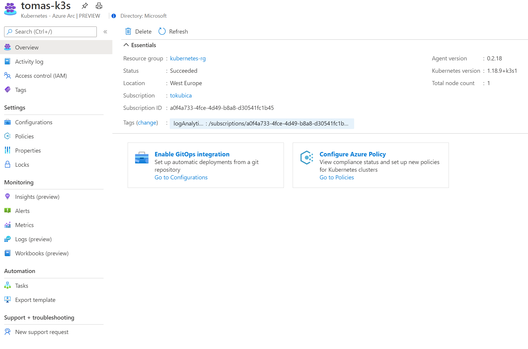 export clusterId=$(az connectedk8s show --name tomas-k3s --resource-group kubernetes-rg --query id -o tsv)