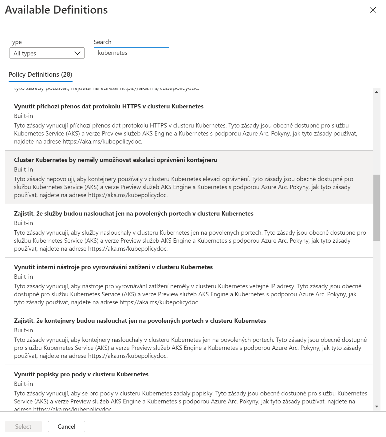 - Řízení bezpečnostních politik z jednoho místa s Azure Policy a to pohodlně a bez nutnosti znát komplikovaný Rego jazyk nebo se starat o nasazení Open Policy Agent s Gatekeeper