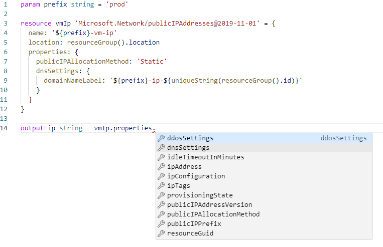 Začněme třeba jednoduchou definicí IP adresy v Bicep.