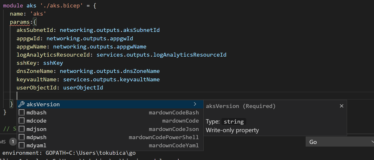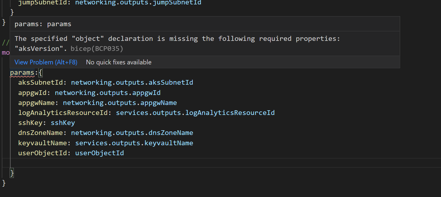 Na moduly jsem si hodně zvykl a používám je pořád. U Terraformu to dělám také, tam ale ještě využívám toho, že modul je adresář a všechny tf soubory v něm se použijí. To mi umožňuje rozdělit si zdroje do vícero souborů a přitom nemusím předávat parametry. To mám rád a v Bicep to nejde … ale zjišťuji, že mi to vlastně už nevadí.