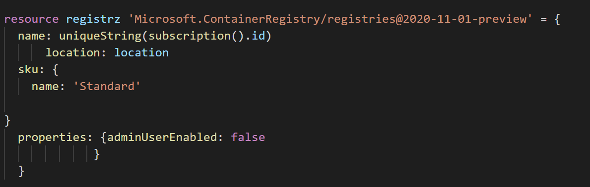 Bicep stejně jako Terraform je DSL, ve kterém na mezerách nezáleží, přesto je jeho čitelnost a schopnost odpouštět na vysoké úrovni (znáte JSON situaci seznam, kde musí být všechno až na poslední položku zakončeno čárkou - vy přidáte řádek a musíte tomu původně poslednímu čárku přidat, nakopírujete položku z jiného seznamu kde je uprostřed a vložíte na poslední místo nového a musíte čárku odmazat apod.).