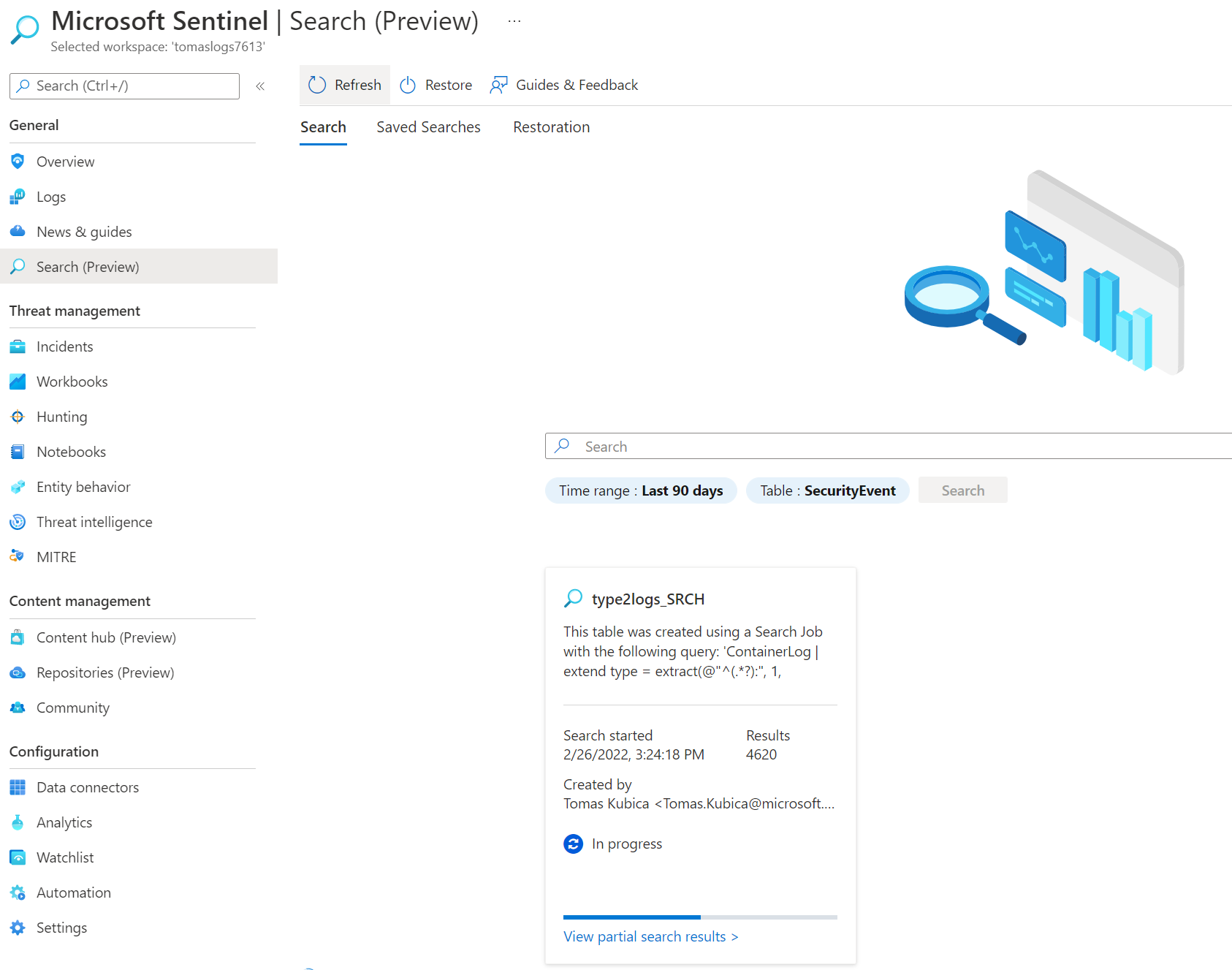 V následujících textech budu pro některé operace používat přímo API. GUI pro nastavování archivací a search joby existuje v preview v rámci Sentinelu a nevím jak to bude ve finální podobě - API ale předpokládám zůstane, takže se na něj zaměřím.