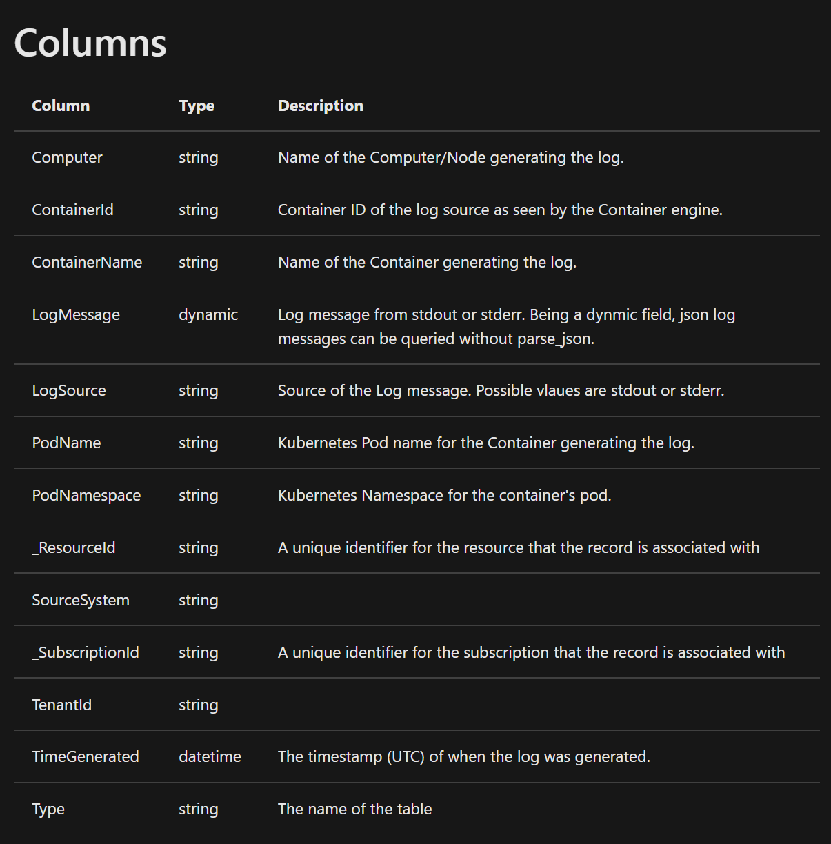 Možná právě proto je v private preview obohacování dat přímo na agentovi, takže v tabulce najdete i informaci o Podu nebo namespace. Znamená to samozřejmě, že takový denormalizovaný přístup generuje větší objem dat, ale na druhou stranu pak nepotřebujete složité join operace a search zvládnete v basic nebo archive tieru v pohodě. Aktuálně už je dokumentace datové struktury tabulky ContainerLogV2 - nicméně vyzkoušet zatím nelze, snad to bude brzy hotové.